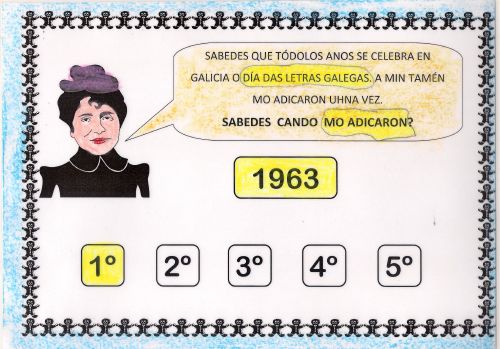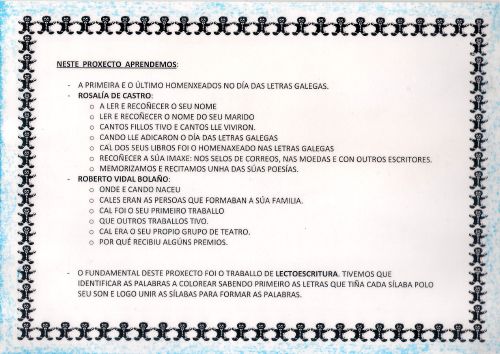 Este ano con motivo do 150 aniversario de Rosalía de Castro nas aulas de 4 anos aprendemos moitas cousas sobre a súa vida e obra. Ademais tamén estivemos investigando sobre o escritor homenaxeado este ano no día das Letras Galegas: ROBERTO VIDAL BOLAÑO.