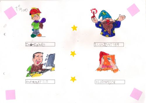 Moitos nenos e nenas da aula de 5 anos aínda non saben en que traballan os seus papás e mamás. Entre todos imos a coñecer as distintas profesións e todo o relacionado con elas.