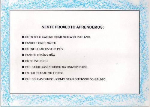 Nas aulas de 3 anos o alumnado quixo coñecer o escritor ao que se xe adicou este ano o día das LETRAS GALEGAS. Vista a súa preocupación empezamos a investigar para atopar respostas as súa dúbidas. ¿¿¿Queredes aprendelas con nós??? Eiquí tendes unha mostra das respostas que atopamos e o que aprendemos: