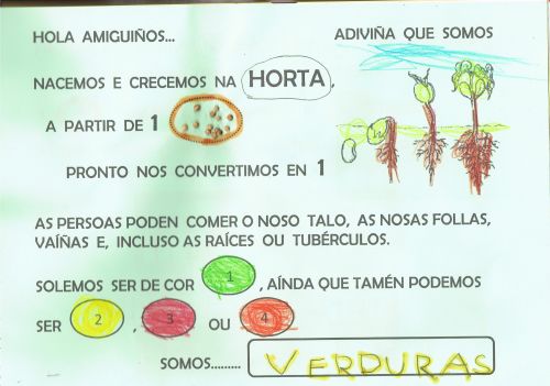 Os nenos e nenas da aula de 4 anos B tamén visitaron a Granxa Quirico. Alí aprenderon moitas froitas, verduras. FIxéronse moitas preguntas sobre eles polo que na clase empezaron a investigar e a dar resposta as súas preguntas. . Fíxádevos atentamente en todo o que aprenderon. |