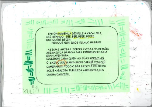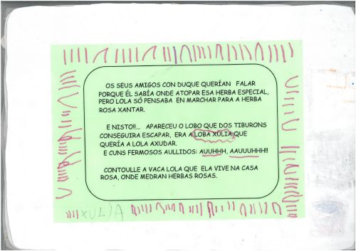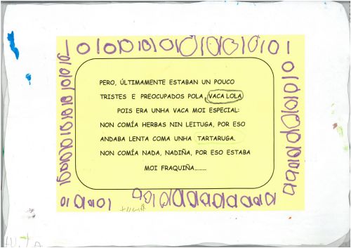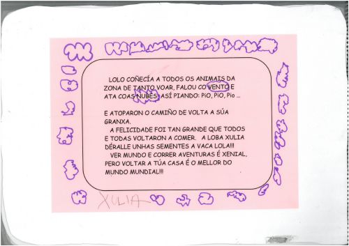 Os nenos e nenas de 3 anos A inventaron un conto "A VACA LOLA". O conto foi empezado na clase e cada día un neno ou nena levaba o conto á casa para continualo. entre todos os nenos e nenas conseguiron crear este conto tan marabilloso. .Eiquí tendes a mostra do noso libro. Mirade que ben nos quedou:
