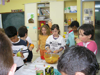 Co obxetivo de favorecer unha alimentación variada e saudable os nosos alumnos de 2º celebraron a festa da froita. Na clase fixeron diferentes postres con froitas: macedonia e zumes naturais; e degustaron diferentes froitas: Para poder levala a cabo foi preciso que cada alumn@ trouxera: - Unha peza de froita. - Un coitelo pouco afiado e con punta redonda( non perigoso). - Unha culleriña. |