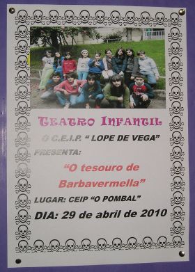 | O noso alumnado de Audición e Linguaxe e de 4º, 5º e 6º de primaria tamén representou a súa obra no Ceip Lope de Vega o día 12 de maio e no noso propio centro o día 20 de maio. | ||