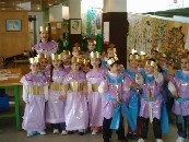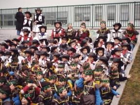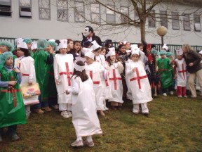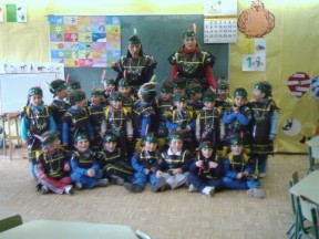 Chegado febreiro cada mestre/a elabora cos seus alumnos os disfraces que lucirán na súa comparsa o venres de entroido. Tamén se elaboran carautas e antifaces. |