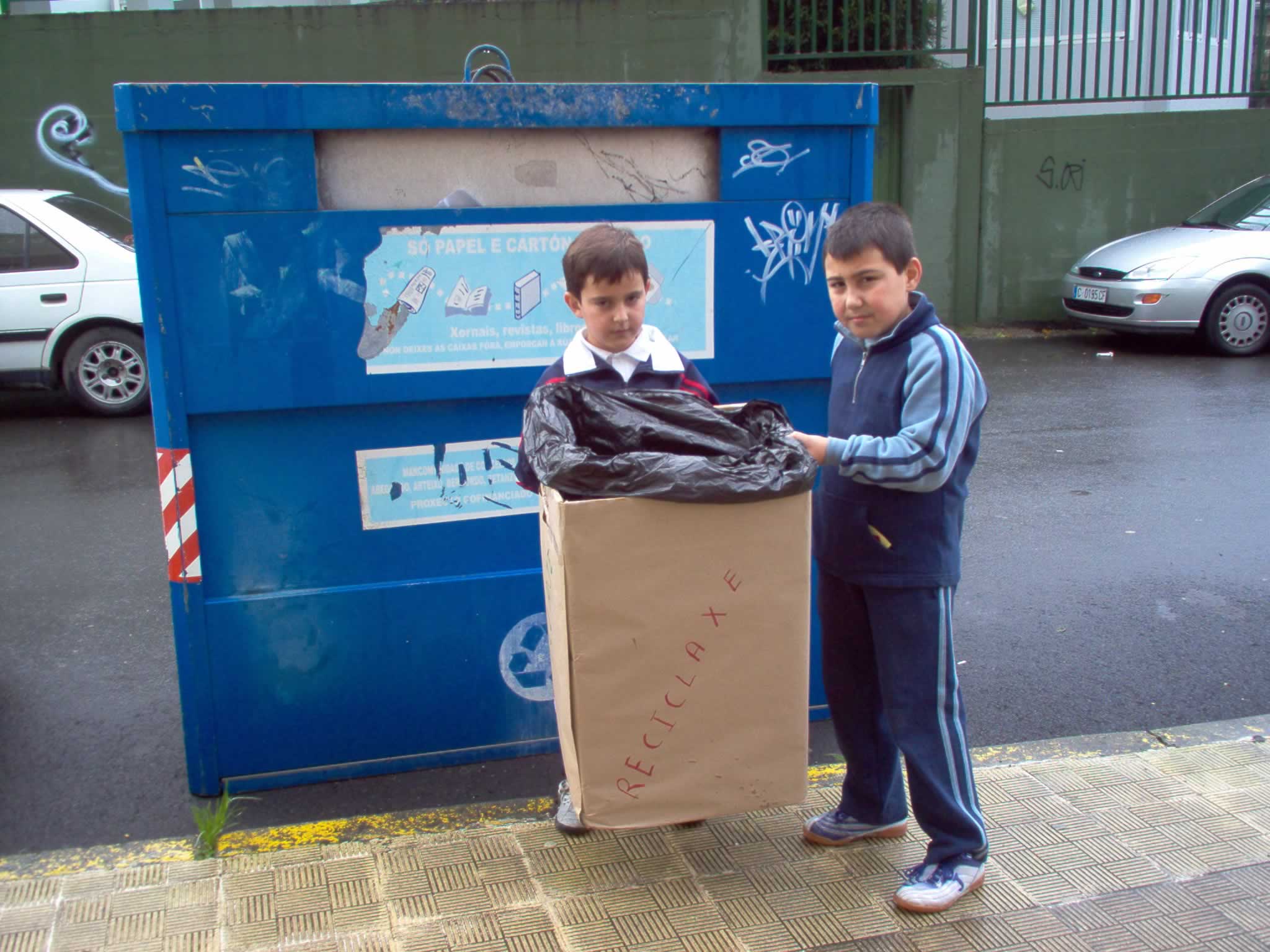 semana e o levan a entrada. Dende alí, na hora do recreo, os alumnos de terceiro, seguindo un turno establecido trasládano o contenedor que hai