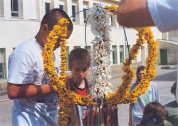 (flores, espadainas, ovos, laranxas...) para despois ir vestindo o Maio.