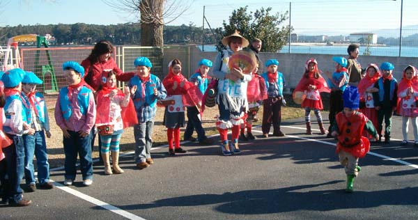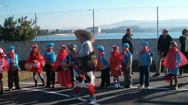 Eu son un leñador vou ó monte a traballar e un día a Carapuchiña tiven que salvar (Música, palmas , baile). |