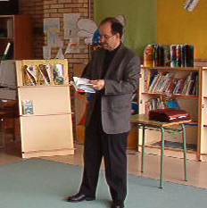 AGUSTIN FERNANDEZ PAZ Ó 27 de febreiro Agustín visitou a nosa biblioteca. Ven falar cos rapaces de 5º, que leron nas súas clases o libro "No corazón do bosque". Contounos cousas da súa vida, da súa obra, os rapaces fixeronlle unha entrevista. Logo firmou unha dedicatoria persoal a cada rapaz.