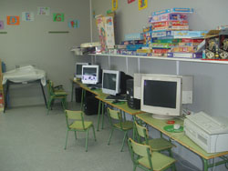 A aula de informática e a Biblioteca comparten espacio. Temos libros adaptados a tódalas edades dos nenos e nenas do noso centro. Tamén é importante dicir que temos cada aula ten a súa Biblioteca de Aula. Cómpre dicir que a Biblioteca tamén é empregada polo mestre de P.T. para atender individualmente ós alumnos e alumnas que o necesiten.