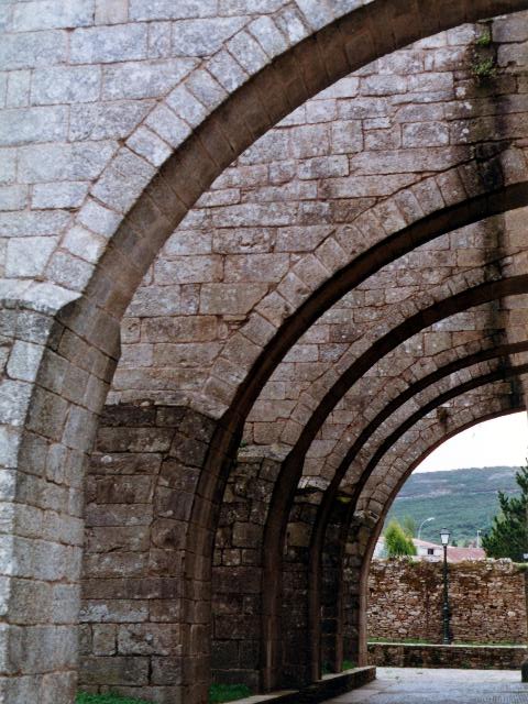 naves y tres ábsides con bóveda de cañón. En el claustro se