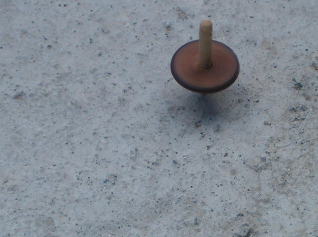 afiado, polo buraco e velahí unha peonza
