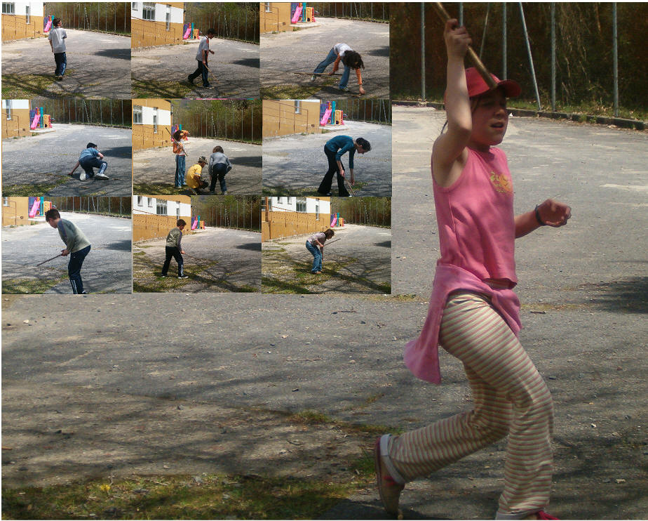 menos unha que lles servirá para tirar, con esa tiran empuxando a canica cos