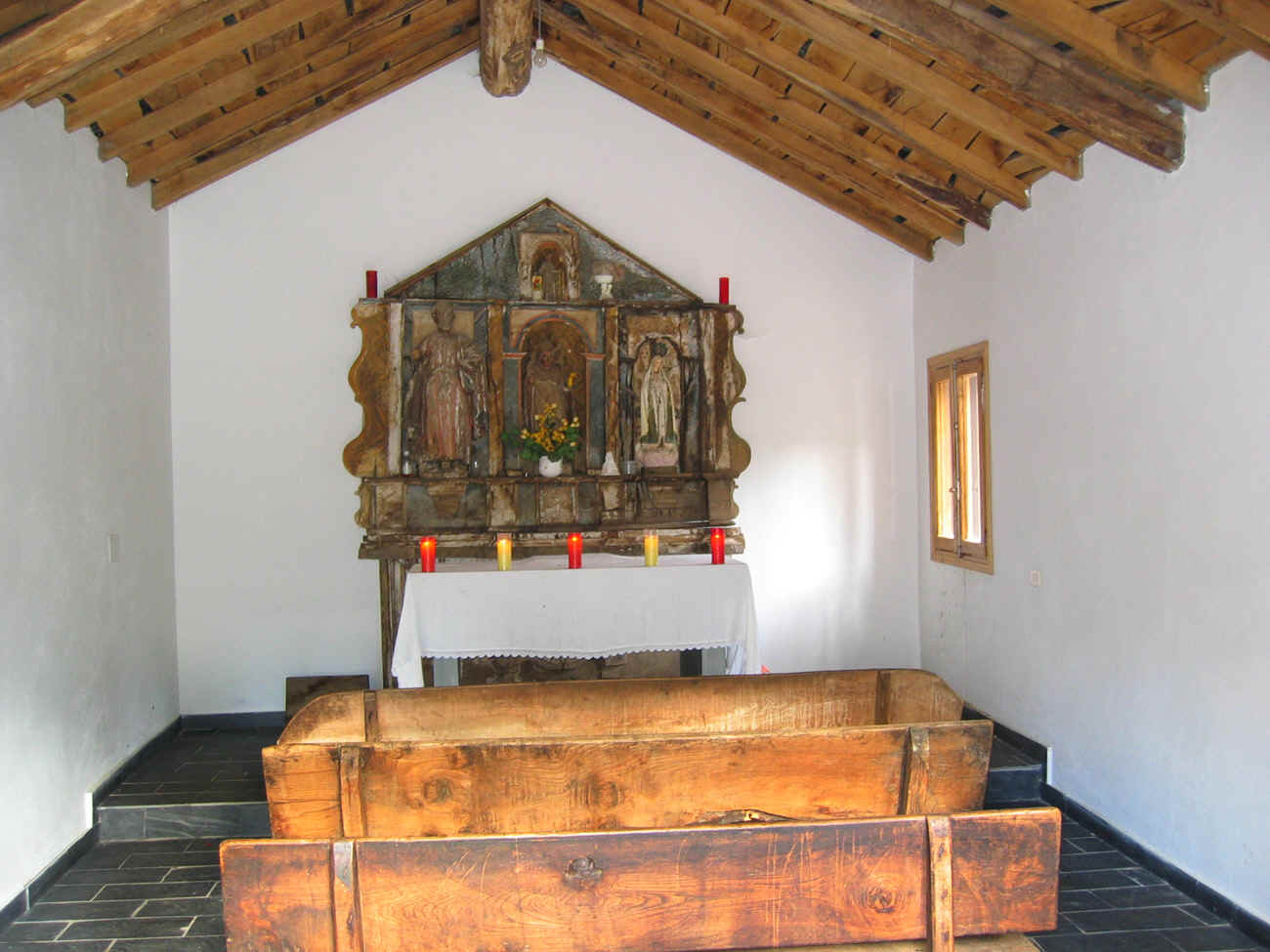 cunha campá na entrada. No centro do altar hai unha