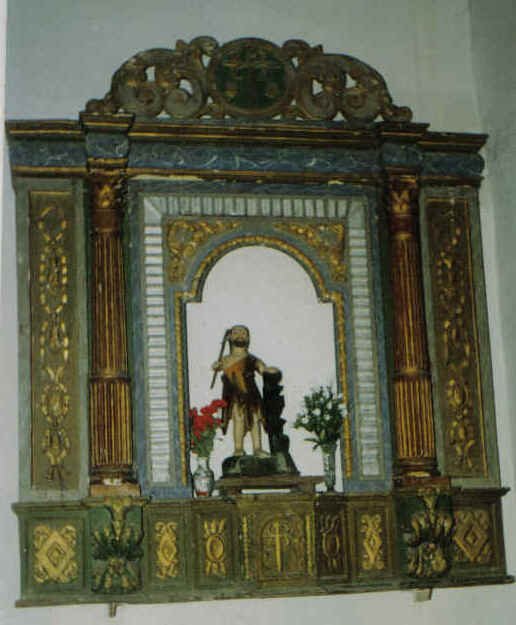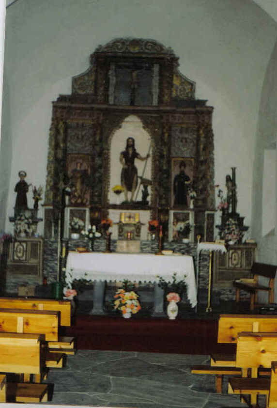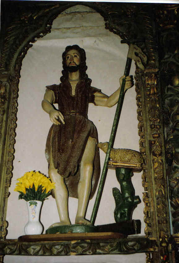 e portas novas). Detrás do altar hai unha serie de santos, ocupando a parte central San Xoán Bautista, enriba del Xesús na cruz.