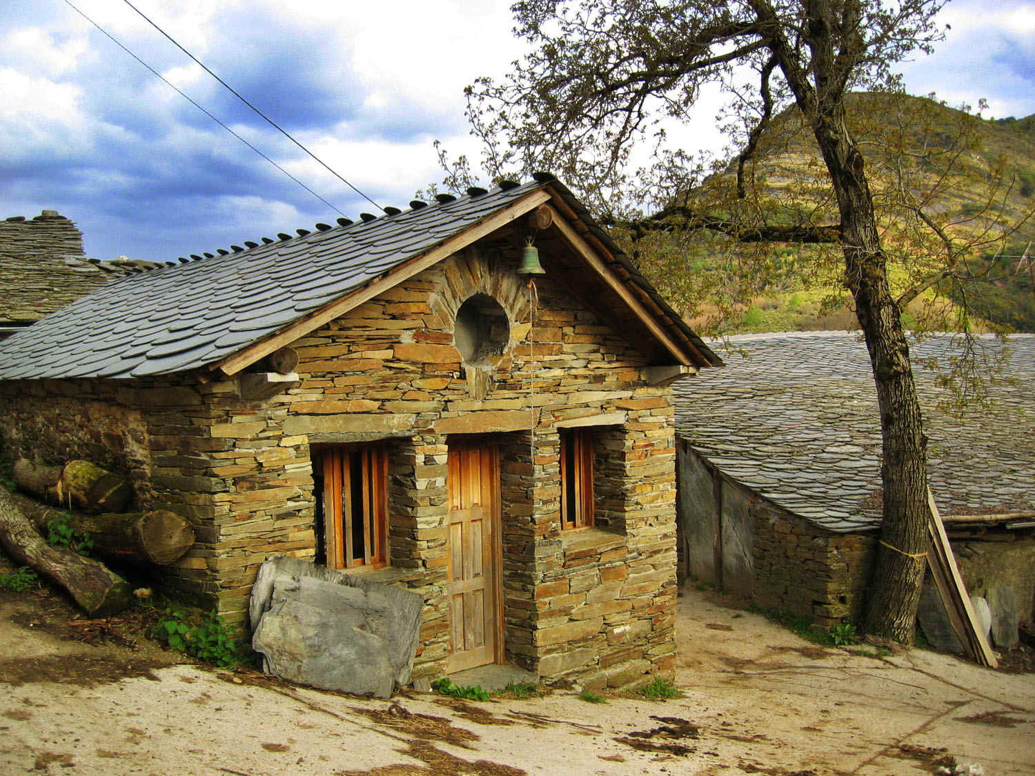 materiais da zona (pizarra e madeira de castiñeiro), deixando unha estructura