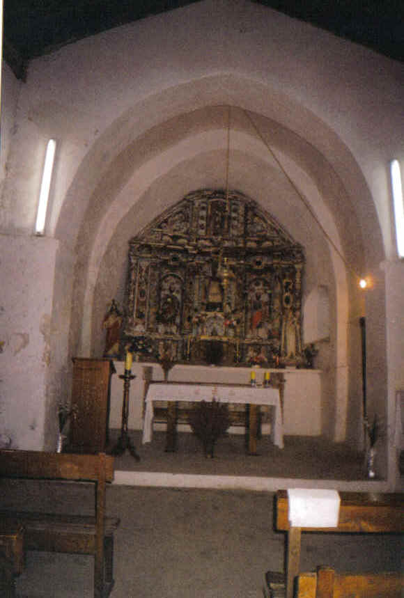 característica desta igrexa é que ten a torre do campanario enriba do altar. Orixinariamente