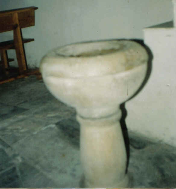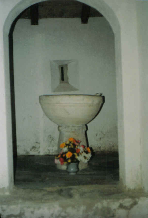 medio da igrexa, no lateral esquerdo,atópase a pía bautismal, iluminada por un