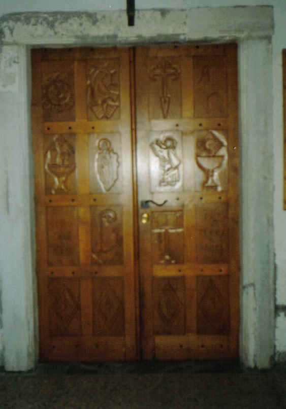letras nun deles; a segunda no ano1955 (data que sinala a porta da entrada) pintáronse