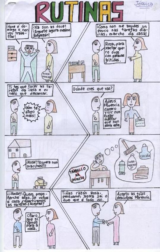 - Ela o primeiro que facía antes de baixar á escola era o xantar para ela e para o seu home. Logo como sempre baixaba á escola e falaba con nós, tamén nos explicaba moitas cousas. Logo no tempo que tiña libre reuníase con Eugenio e falaban un pouco e escribían as súas poesías.