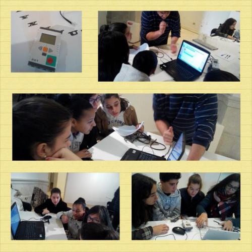Primeiro aprederon a manexar os robots NXT e despois realizaron varias experiencias de captura de datos (dattalogging). Esta actividade propúxonos que se interrelacionaran varias materias fomentando así a interdisciplinariedade. En concreto implicáronse as ciencias STEM, Matemáticas con representación de datos, Física con toma de datos físicos (son, temperatura, humidade, distancia, ....), Tecnoloxía cos propios aparatos que se empregaron e incluso o Arte vendo a obra da pintora Bridget Riley, figura destacada dentro do movemento artístico Op Art.