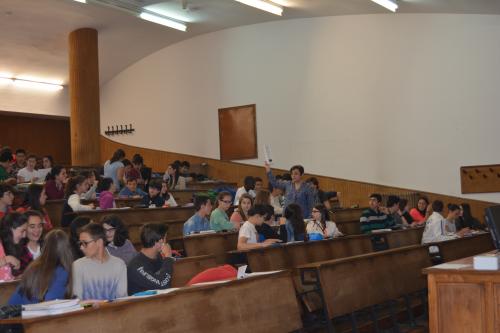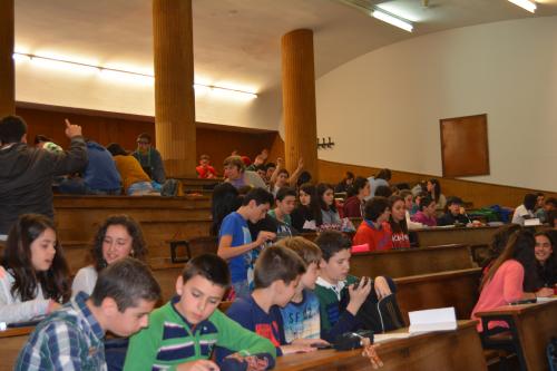 De novo dentro do programa "A ponte entre o Ensino Medio e a USC" e despois de xa ter realizado uhna charla sobre Relatividade e Gravitación, organizouse o venres 23 de xaneiro,  para os cursos de 3º e 4º da ESO, unha charla temática sobre os constituintes básicos da matéria: os átomos e os núcleos atómicos co suxerente título de "Dende o corazón da materia ó interior das estrelas".