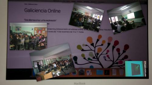 O pasado xoves 19 de novembro, os alumnos de 3º e 4º da ESO, asistiron no colexio a unha sesión de videostreaming titulada "Dos átomos á luz: unha exploración". Esta retransmisión simultánea online foi promovida por Tecnópole, con motivo do 10 aniversario da Galiciencia.