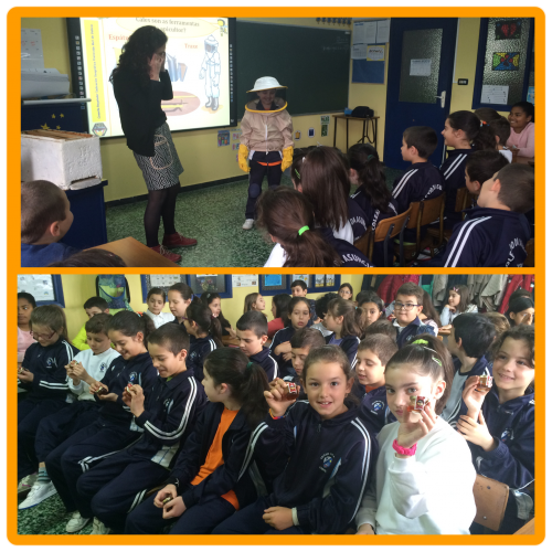 Onte pola mañá recibimos no colexio a visita de Beatriz Ríos, que impartiu aos alumnos de 3º e 4º de Ed. Primaria unha actividade titulada "O doce mundo do mel en Galicia".