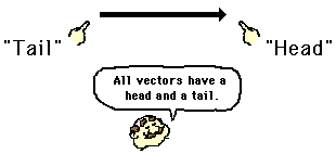 arrow (with arrowhead) is drawn in a specified direction; thus, the vector has