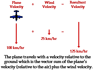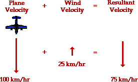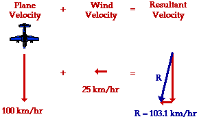 the resultant velocity of the plane (magnitude only) if it encounters a