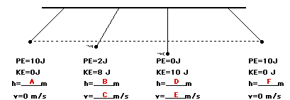 (assume no friction) to fill in the blanks at the various marked positions for