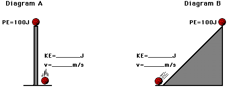 energy and the velocity of the 2-kg ball just prior to striking the ground.
