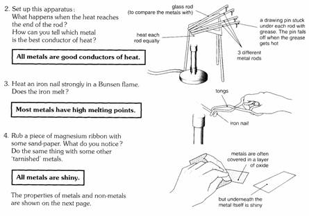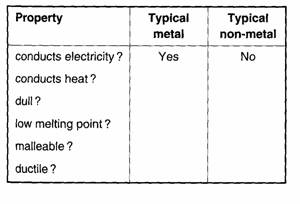 metals and non-metals have the properties listed in question 2. Can you name