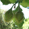 De tipo aquenio, de 1 a 2 cm, pardas e con tres arestas moi marcadas e cuberta de espinas non pinchudas. Froitifica entre setembro e outubro