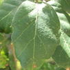 Simples e coriáceas, de 3-7 cm. Co pecíolo tomentoso. Forma ovada a oblongo-lanceolada, cos bordos enteiros e con pequenos dentes. A face de cor verde escura e o envés gris tomentoso. O nervio medio é sinuoso