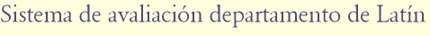 1. Textos: Análise sintáctica , traducción de textos en Latín e cuestións de morfoloxía. 2. Temas de cultura e Literatura. Tódolos exames farán media entre si. A parte de Textos suporá un 70% / 60% da nota; a de Cultura / Literatura , un 30 % / 40 %. É necesario acadar unha calificación mínima en cada parte . O léxico incluirase indistintamente no apartado I ou II. Non haberá probas especiais de recuperación. En cada exame entra a materia anterior, tanto no que respecta ós contidos lingüísticos coma ós culturais.