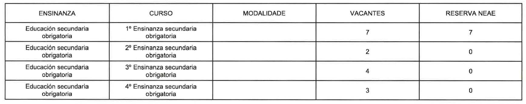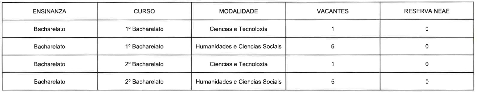 Proceso de admisión de alumnado para o curso 2026/27: OFERTA DE PRAZAS VACANTES