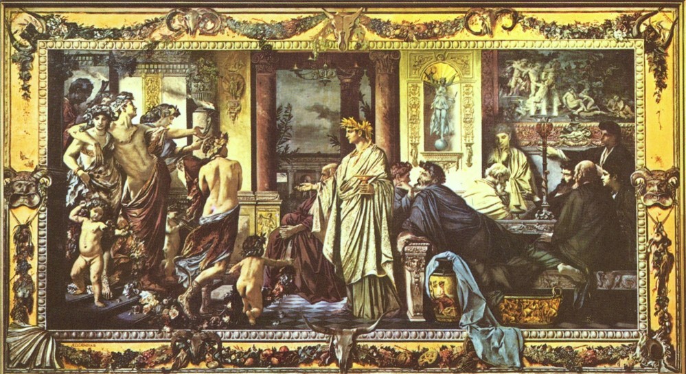 Cadro do pintor alemán Feuerbach sobre O Banquete, inspirado no célebre diálogo de Platón, unha das obras fundamentais da filosofía que ten como tema o amor