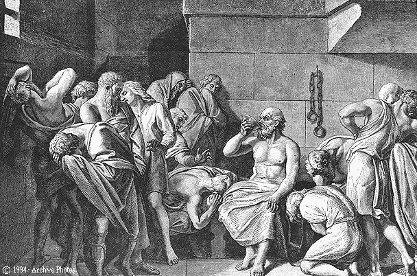 Representacións pictóricas do filósofo grego Demócrito de Abdera e da morte de Sócrates