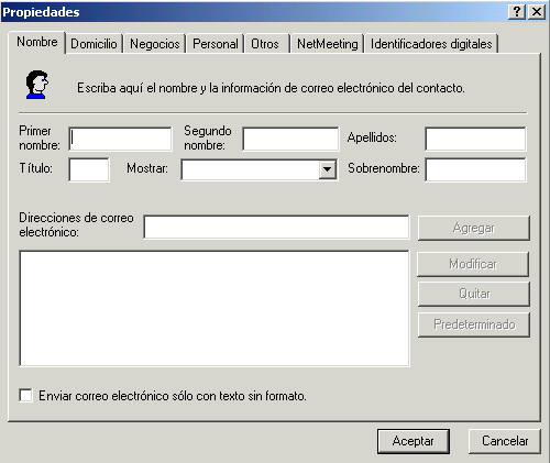 pueden también guardar en la Agenda las direcciones de correo electrónico