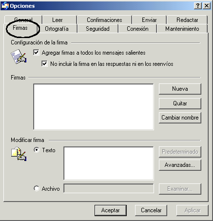 Para crear una firma se selecciona en el menú Herramientas -- Opciones