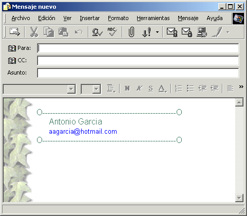 Si seleccionamos el estilo "Hiedra", al pinchar sobre un mensaje nuevo, aparece el mensaje de la siguiente forma: