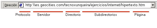 La dirección completa de una página se denomina URL (del inglés Uniform Resource Locator, o Localizador Uniforme de Recursos), mientras que la dirección del servidor se conoce como nombre de dominio.