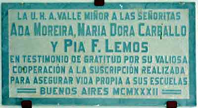 No Boletín que a U.H.A.V.M. publicaba, póñense de manifesto as inquedanzas intelectuais da Sociedade e a grande variedade de autores que nel colaboran, fálannos da súa mentalidade aberta as correntes de pensamento da súa época. Podemos citar: ...."Homes do seu tempo, enraizados nunha sociedade, a arxentina, cosmopolita, moderna, urbana e progresista, non esqueceron as súas raíces e tentaron construír unha ponte entre as dúas culturas, a galega e a americana. Ares de Parga recoñece con orgullo a capacidade dos seus coterraneos por transformar en positivo as propias carencias persoais...mediante a organización colectiva, en obras de inmensa significación altruísta" ...( Malheiro) Ó iniciar a súa andaina a Sociedade establece como obxectivo prioritario promover a educación, construíndo unha escola que ademais de rexenerar e impulsar o progreso da comarca, servira para preparar aos nenos e nenas para que puideran desempeñar oficios dignos na emigración. Contou cunha Comisión Directiva formada polos promotores na Arxentina e un Consello de Administración no Val Miñor, que supervisaba e informaba periodicamente da marcha da escola. A Asociación chegou a ter máis de 600 socios, todos eles aportaron as súas cotas e o seu apoio nesta empresa e con todos eles temos unha débeda de gratitude. |