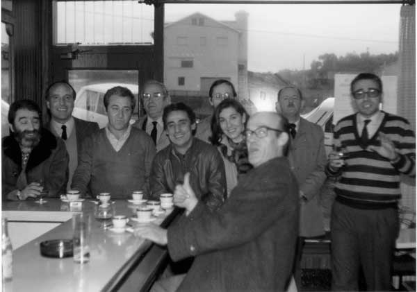 | 1982. Grupo de profesores do Instituto «Francisco Aguiar». De esq. a der.: Manuel Vázquez, José Reimúndez, Serafín Caamaño, Manuel López, José Luís López Mejuto, José Viader, Elena Lago, Mario Goñi, Esteban Martínez Lago e Antonio Barros. |