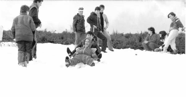 | 1984. Alumnos do Instituto «Francisco Aguiar» nunha excursión a Manzaneda. |