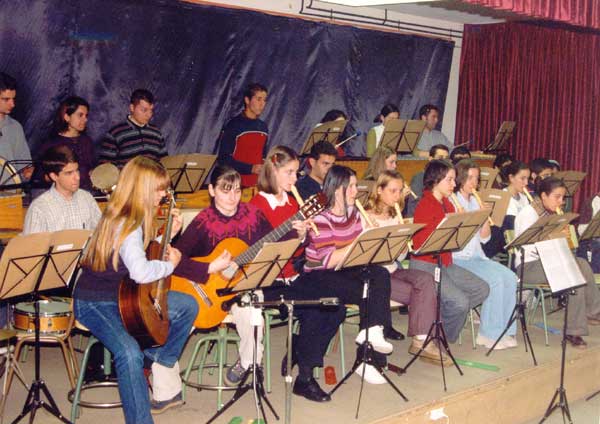 | Concerto do grupo musical do Instituto "Francisco Aguiar", baixo a dirección da profesora Dª Ángeles Dolores Tagarro. Acto celebrado no Salón de Actos do Instituto. |
