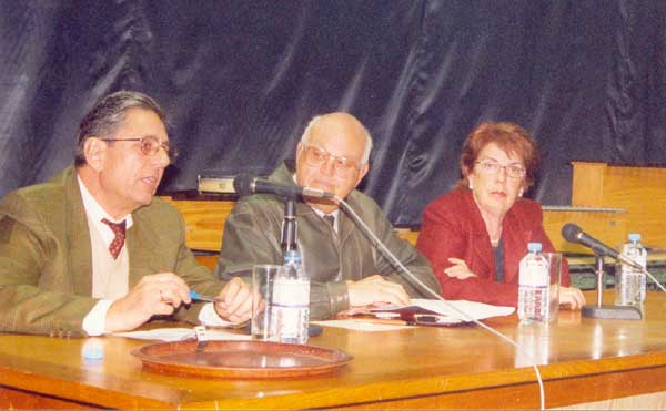 | Mesa Redonda sobre "Radio Instituto Laboral de Betanzos". Interveñen D. José Luis de Tena Noguerol (á esquerda), Dª Carmen García Martín e D. Marcelino Álvarez, celebrada no Salón de Actos do Instituto. |