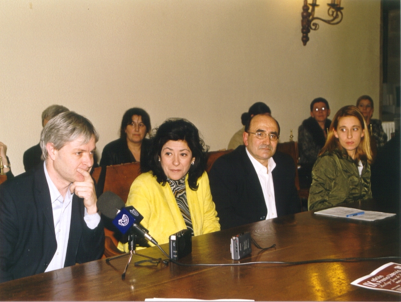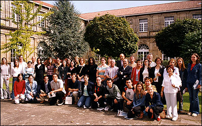 Velaquí os vemos no claustro do Instituto Rosalía de Castro, en compañía dos outros alumnos participantes e de varios profesores,o día do fallo.Se buscades ben, atoparedes a Gemma Oseira, Míriam Álvarez, Uxía Vidaurrázaga, Cristina Piñeiro, Antonia Gamallo e Antón Martínez, todos eles de 2º de BAC no curso 2002-03.