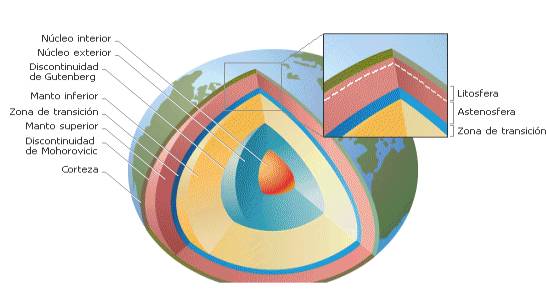 La litosfera distingue a la Corteza y el manto superior e inferior que se