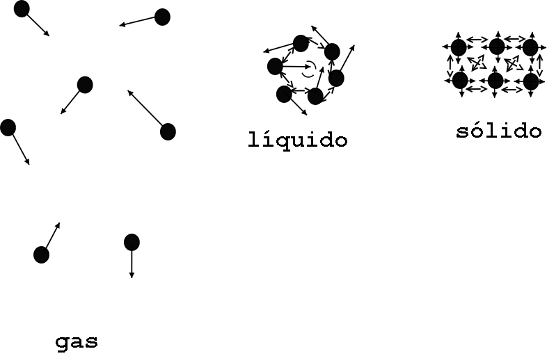 Para xustificar os cambios de fase que se producen cando cambia a temperatura (p.ex. no caso da auga) debemos reflexionar sobre as forzas internas que hai entre as partículas nas tres fases: sólidos → posicións definidas, líquidos → movemento dentro de certos límites e gases → partículas case-libres; nas tres fases hai movemento e un aumento na velocidade das partículas por mor dun aumento de temperatura pode romper as forzas de ligadura que lles obrigan a manterse en posicións definidas -fusión- ou moverse libremente no recipiente -ebulición-.